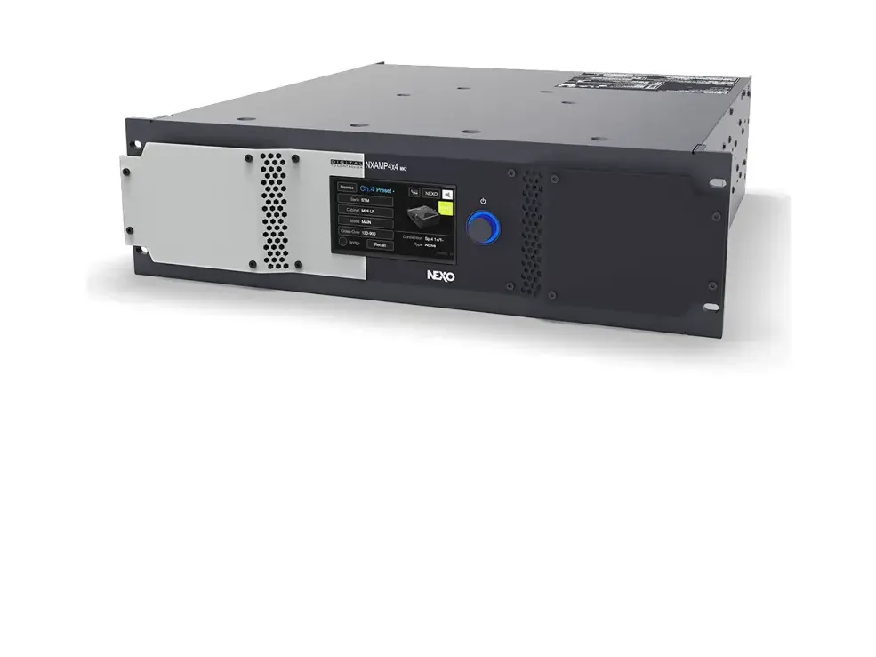 The Nexo NXAMP4X4 MK2 is a 4-channel powered TD controller combining high-output Class-D amplification (up to 4 × 4500 W) with advanced DSP for precise loudspeaker management